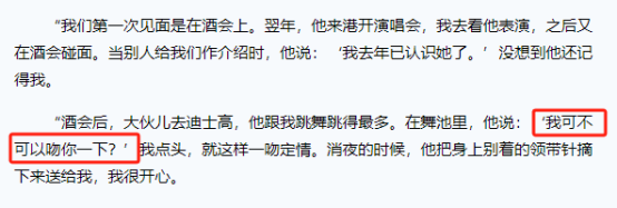 舞到兴头上,近藤真彦在梅艳芳耳边问:“我可以吻你吗?”梅艳芳没有犹豫点了点头,这个突如其来的吻,也开启了这段跨国恋情的序幕。