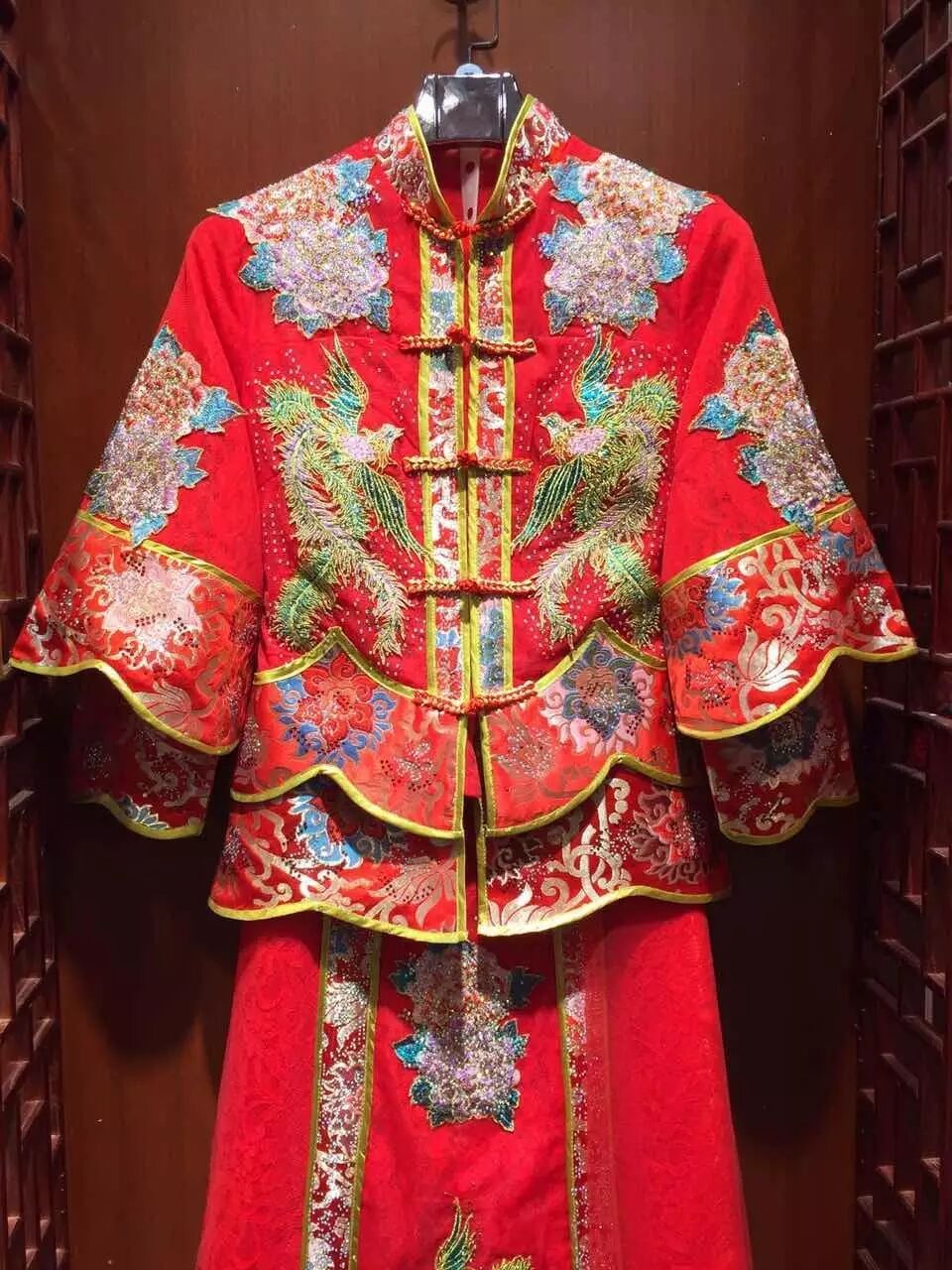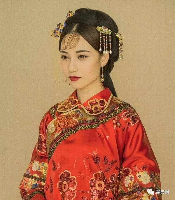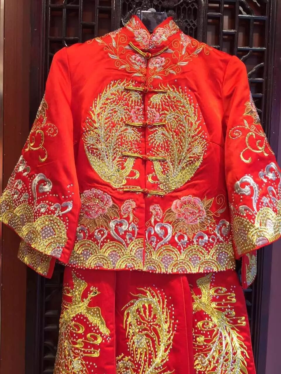 秀禾服,实为清末民初女子所穿之袄裙,源自满州人的服饰。秀禾服也分“褂”和“裙”,“褂”是指上身的对襟衣,“裙”则是下身长裙。