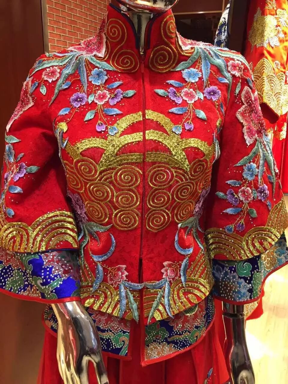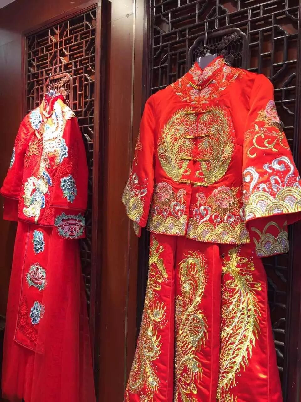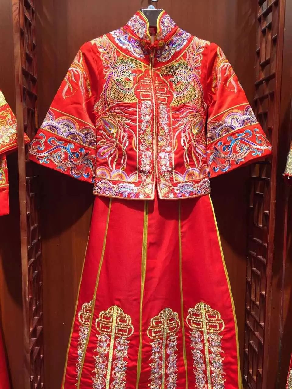 秀禾服的长度刚到脚踝,所以红鞋的搭配还是很重要的,跟秀禾服一样刺绣而成的绣花鞋无疑是最相衬之物。