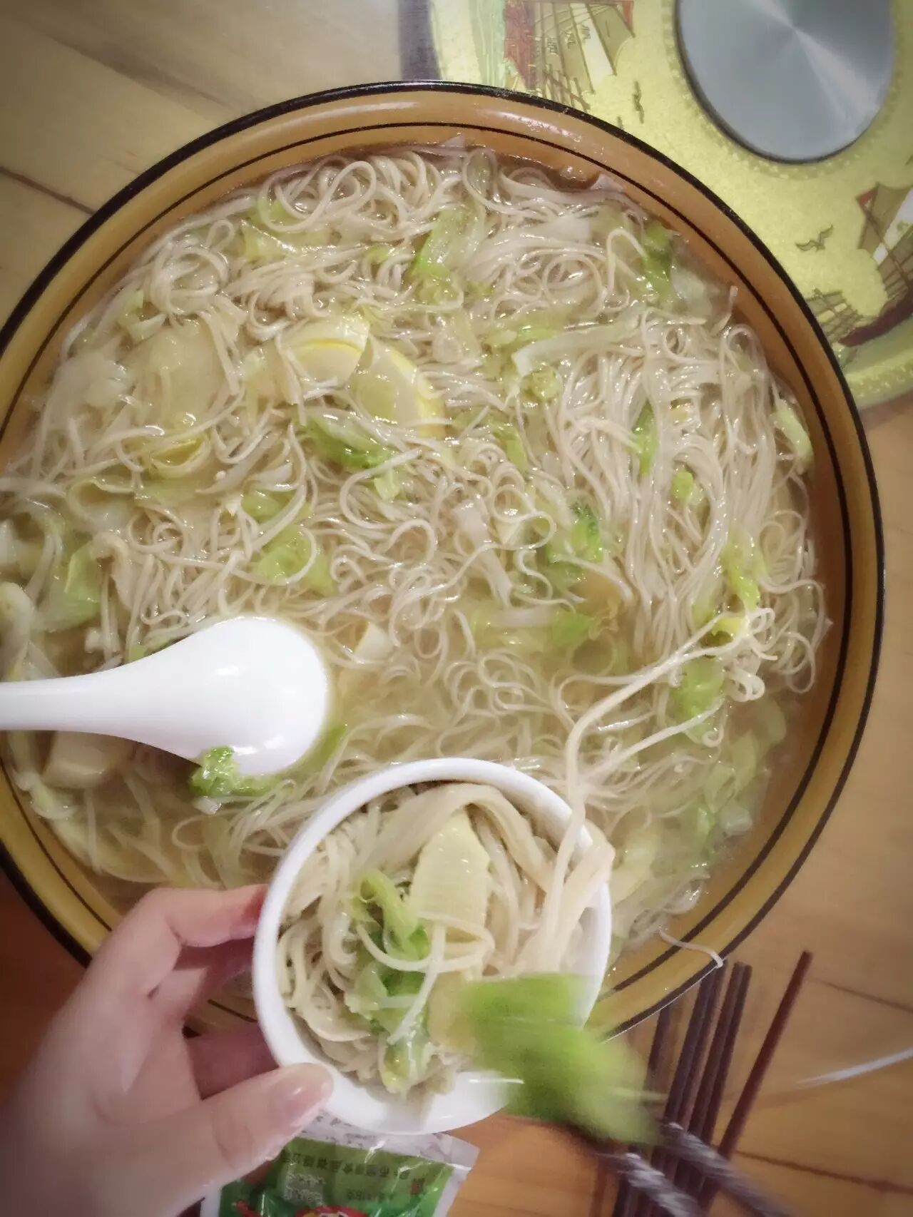 早上起来,被眼前这碗巨大的一盆面震惊了。永嘉特色美食”素面“,面条的外表,吃起来却有粉丝的细腻感。关键是分量很足,味道实在是美翻了。没想到在民宿也能吃到这么好吃的食物。先让我哭会儿,老板肯定是想到我们要登上龙湾潭山顶会很累,故意给俩人这么大的量吧,真是用心。