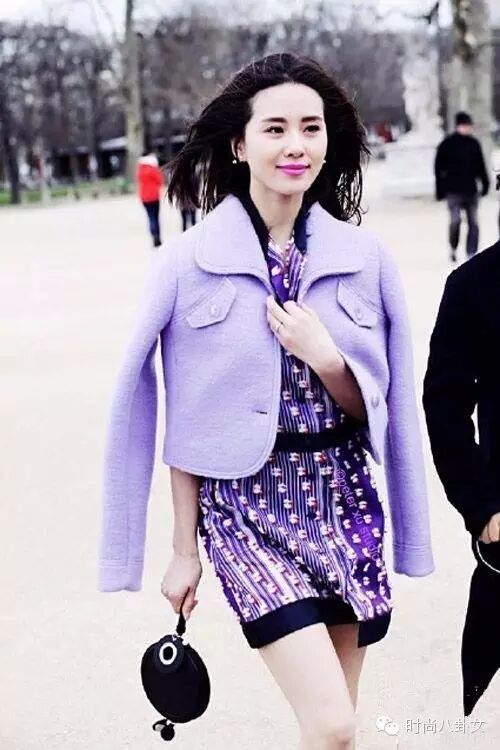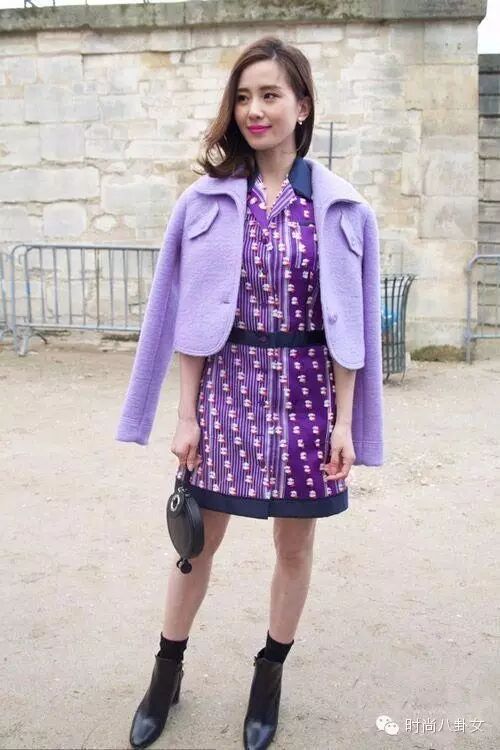 刘诗诗亮相Carven2016秋冬秀场,紫色小外套配紫色连衣裙清新脱俗,尽显浪漫柔情,女人味十足。↑↑↑