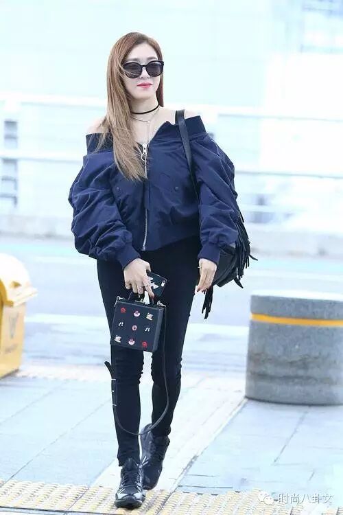而韩国女星方面还有少女时代成员Tiffany黄美英也将加入看秀大军,机场照型用深蓝色露肩装配紧身裤和短靴,帅气又不失小性感,看秀造型也很值得期待呢。