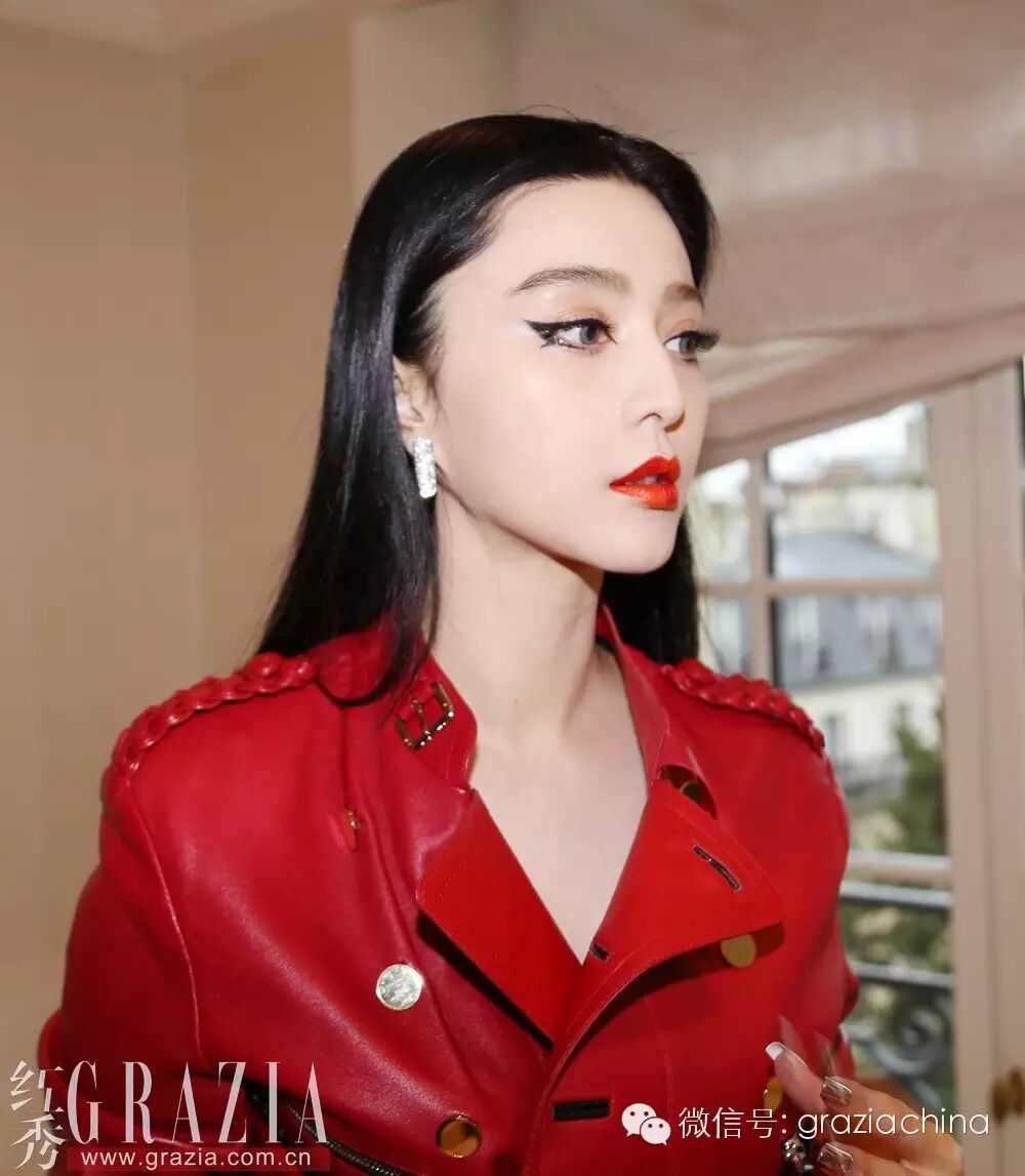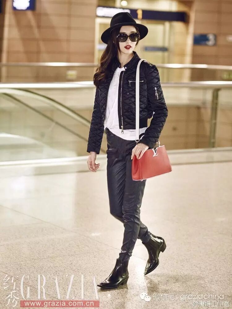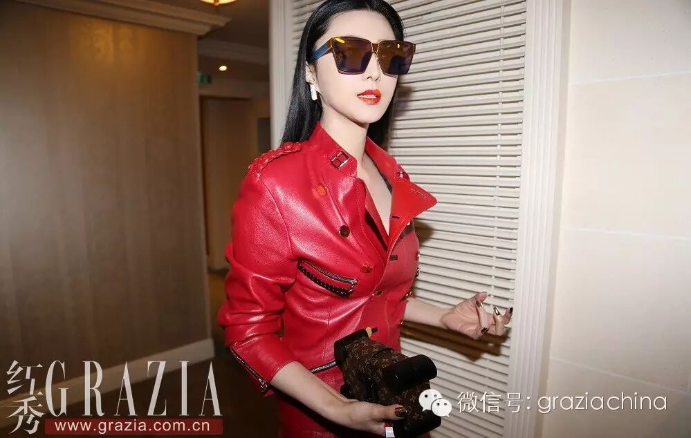 wuli冰冰每次亮相自然都是吸睛指数最高的那一位,红色皮衣、大红唇、大号墨镜,既性感又帅气十足!