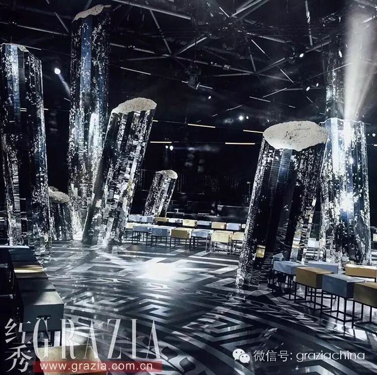 设计师使用“未来考古学”概念在2016秋冬系列秀场设计上。发现未来的考古之旅。如同在水底发现的亚特兰提斯城般,失落的未来城市。