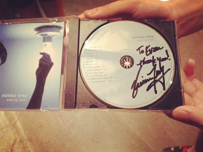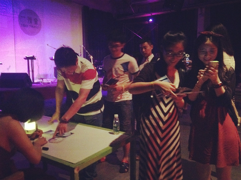 下图条纹装女孩早早从国外Vienna Teng网站得知国内巡演安排,是第一个打电话来一渡堂咨询深圳站巡演明细,特地从长沙和小伙伴一起赶过来的!cool!