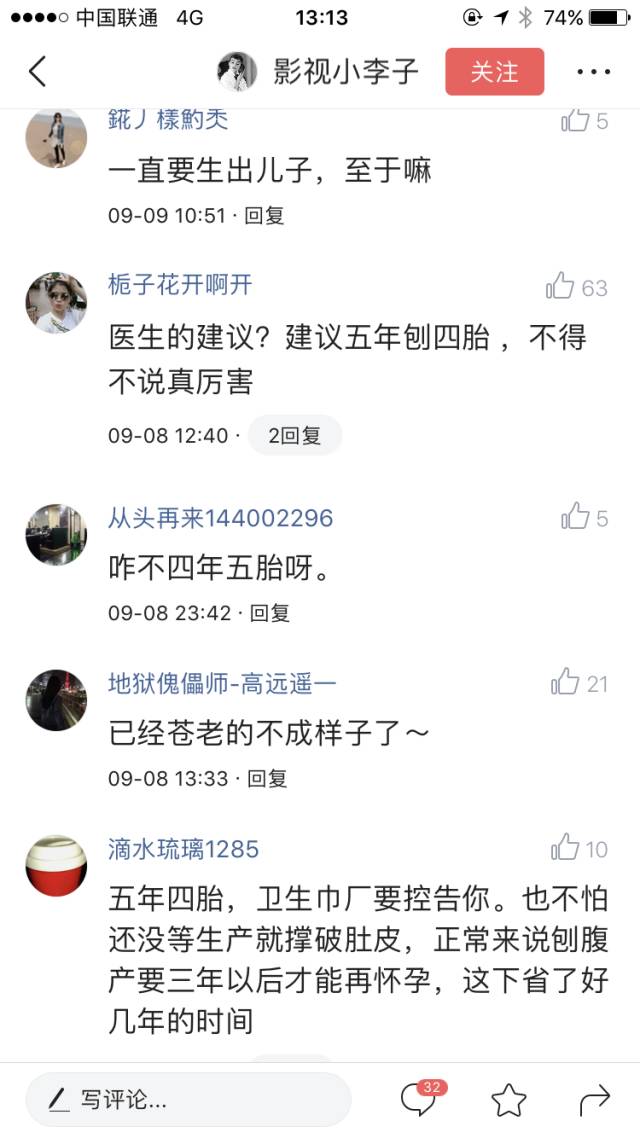 面对镜头,她首次回应了被诟病多年“五年四刀”的感受,她说:“我看到了网上面有很多人说我是不顾生命危险生小孩来固住老公,首先我很相信我的医生,剖腹产完全不疼”
