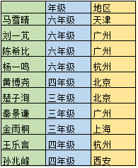 组别 姓名 参赛城市
