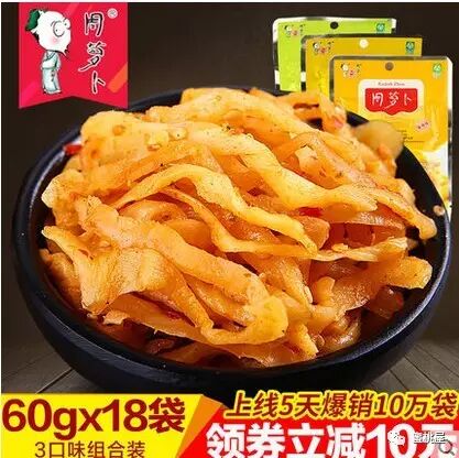 推荐语:天猫旗舰店销售,领取10元券后,价格18.98元。四川特产麻辣萝卜干60g*18袋,3种经典口味组合随意搭配,百年秘制,传承美味,需要入。