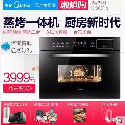 推荐语:天猫专卖店销售,领取1000元券后,价格2999元。嵌入式与橱柜合二为一,更节省厨房宝贵的空间,采用全玻璃触控面板,易清洁耐刮伤,下拉门可以成90度角,可以作为料理台使用,支持8公斤成重,802不锈钢加热管,经过高温蓝化技术处理,耐高温耐腐蚀,水盒内置感应器,可以从操作面板上直观看到水量,童锁功能保证孩子安全。升级蒸汽发热技术,30秒快速喷射微高压饱和蒸汽,与背部热风对流交替加热,腔体内温度高达220℃,烹饪速度更快,三大烘烤模式,均匀烘烤,保留食物鲜嫩口感,4D热风循环,快速穿透食物内部,有效避免食物局部烤焦,令烤箱内部热量均匀分布,达到食物充分加热效果,满足不同的口味需求。蒸汽功率1500W,烧烤功率 1100W,热风对流功率1600W,最大功率3100W,尺寸大小为:595mm*525mm*454mm,净重29kg,34L容量,一次满足4-6人分量,适合一般家庭使用。