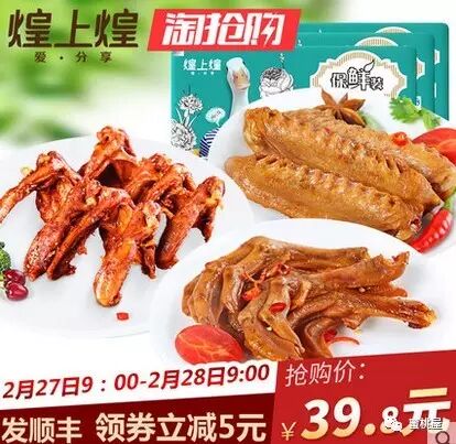 推荐语:蜜友爆料好价再来,不过室外温度变高,蜜友要注意。我们多次推荐,入手的蜜友评价很不错,当地蜜友说在江西超爱,而且价格很贵,天猫煌上煌食品官方旗舰店销售,目前淘抢购39.8,可用5元优惠券(淘口令:¥cPOM99OcZ6¥,可领取2张),下单实付34.8元包邮,近期很不错的价格了,煌上煌是一家以卤制品为主的企业,算是江西省的名牌,而且是上市公司,当地人过节基本都要买他家的酱鸭之类的~