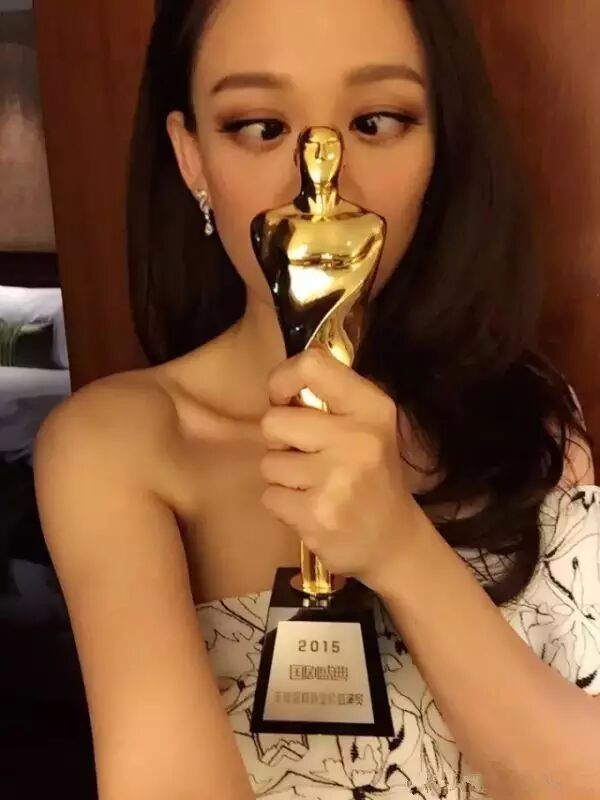 连在国剧盛典领到奖杯,也不忘了搞怪一下。▼