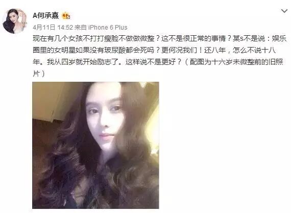 针对别人说她“整容八年成范冰冰”何承熹本人是这样回应的↓↓↓↓