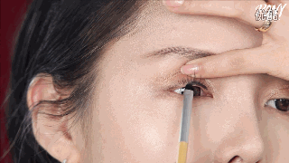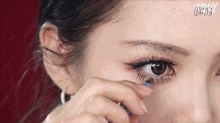 如果觉得假睫毛痕迹太过明显,可以在粘完之后用与眼线同色的眼影粉遮盖一下。