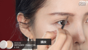 用高光笔轻轻提亮卧蚕,在卧蚕下面用深色眼影轻轻画一道阴影,卧蚕会更加明显。