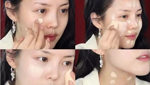 在脸上涂一层粉底,均匀服帖就行了。如果手实在不行,用化妆海绵就更容易服帖啦~