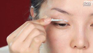 贴假睫毛的时候先从中间开始贴,然后贴眼头和眼尾。