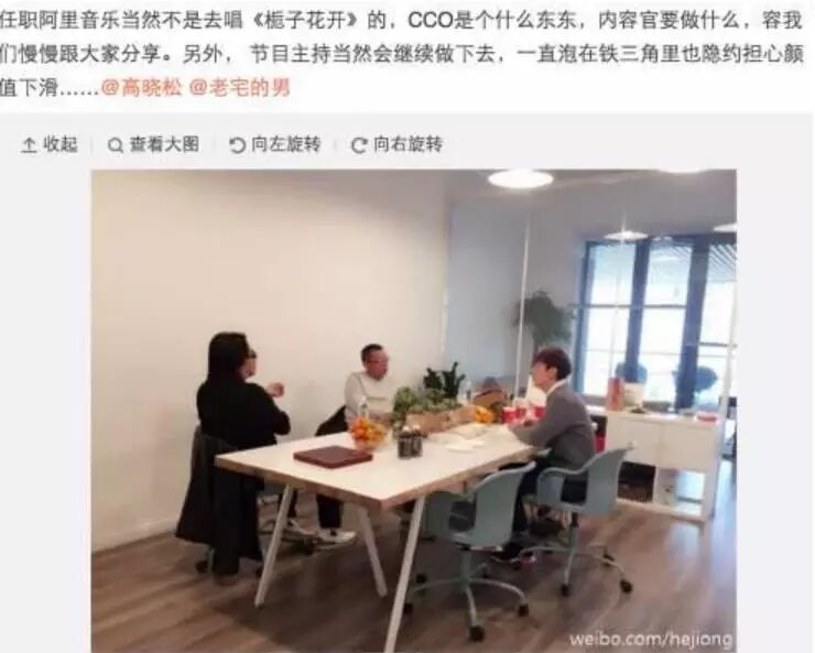 而对于阿里音乐来说,何炅的的媒体资源和影响力应该是更被看中的点。作为湖南卫视最知名的主持人之一,何炅背靠的是拥有湖南卫视、天娱传媒、芒果TV的芒果传媒,另外微博粉丝高达700多万,媒体形象也极为正面。这些都会极大增强阿里音乐的竞争力。所以可以想象,虽然何炅并不是全职负责CCO的工作,但带来的价值却并不低。