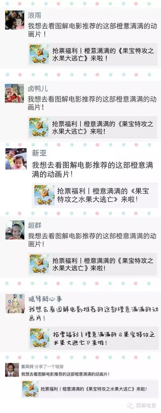 恭喜以下用户获得电影《果宝特攻之水果大逃亡》的观影券两张。请在48小时内联系小编私信兑换码,过期不候~(工作时间内小编会尽快回复,切勿着急。)因为最近活动较多,请私信时注明中奖电影以便准确发放。祝观影愉快!