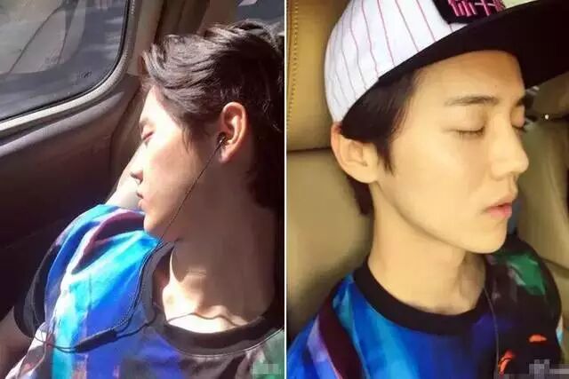 我们kris-吴亦凡,睡觉也是明星标准姿势,旁边的好像是可爱的包子xiumin哥