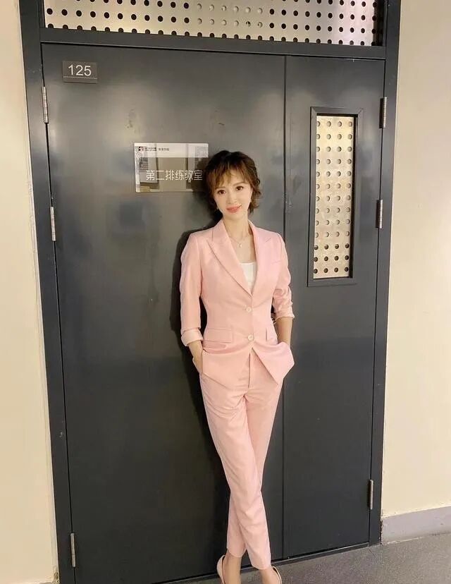最后这身粉色西装套装,我觉得特别适合日常通勤!