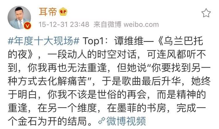 2015年是谭维维全面爆发的一年。《我是歌手》第三季上,一曲《乌兰巴托的夜》被乐评人耳帝评价为“2015年最佳现场演出”。