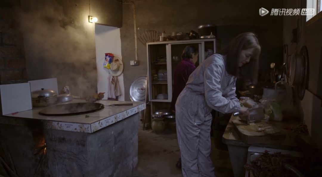 山村田园间,炊烟缭绕的厨房,老人和孙女没有过多语言,平凡淡然温馨,仿佛在拍一部乡村文艺电影。