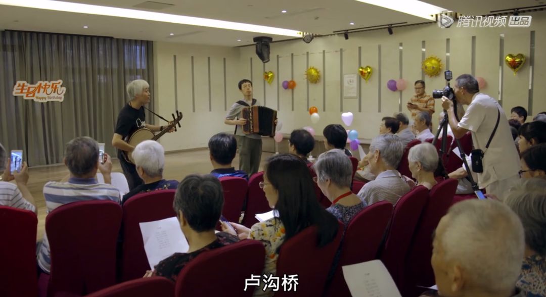 老一辈人都比较羞涩腼腆,他们就使出浑身解数鼓励老人唱出来,陪着老人一起唱。