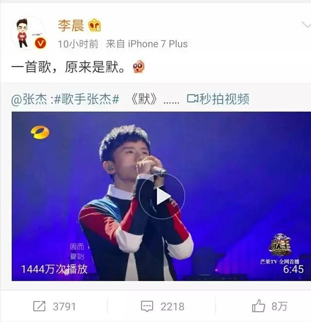 大喷子就是我,我就是大喷子圈姐,芒果台最近《歌手》办的如火如荼啊。昨晚张杰挑战了那英难度超高的歌曲《默》,获得了在场同台竞演歌手的认可,歌手互投第二,观众投票第三。