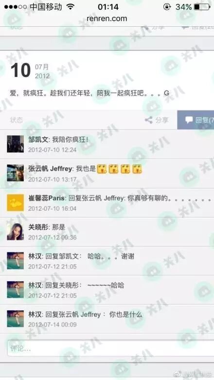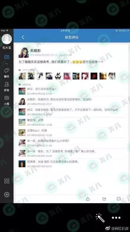 从截图中我们可以看出两个人当时十分的恩爱,后来因为高考两个人分开。
