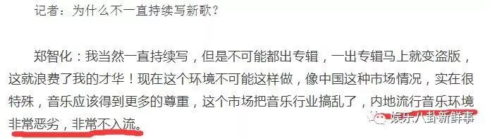 面对媒体采访,郑智化抨击当今流行歌坛,尤其是内地流行音乐非常不入流!