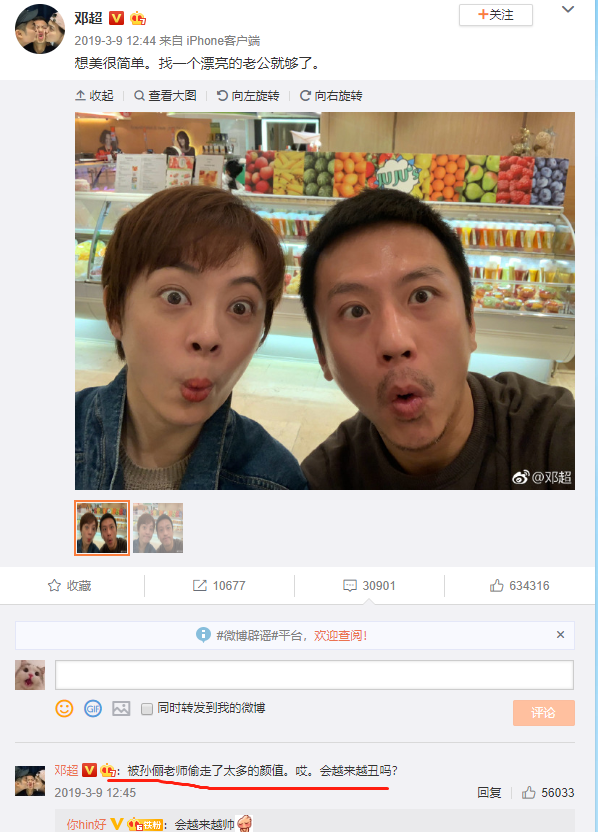 但是孙俪和邓超还是一如既往的恩爱,微博上互相揭短吐槽,完全没有形象包袱。