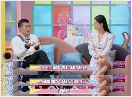 在整个节目的录制过程中,面对扬子说话的“放飞自我”,可以感觉出黄圣依时时欲言又止,甚至有些无奈。