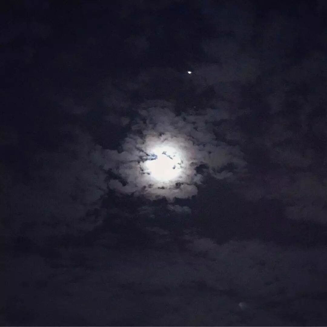 应该是高二的一个晚上,上晚自习前。一行人从食堂出来回教室。夜凉如水,一阵微风吹过,卷起片片黄叶堆散在昏暗的路灯下。远远的,传来篮球场上“乓、乓”的拍球声,还有运动鞋在水泥地上挪转、跳落的摩擦声。下傍晚的天空黑得还不够浓,反而泛着幽蓝的荧光,淡淡的有几痕云迹。一轮明月就悄悄地悬在天边。我之前从未见过这样的月亮:温润、圆满,不似夜深时分皎洁的清晖,晕着层橘红色,色泽如水,漾在深蓝色的夜空中。一种莫名的情绪忽然就涌了上来——像是愁,却又说不出愁的是什么,而任由这情绪在胸间升腾,也不觉着烦躁,只觉得心下清凉。我之前从未有过这种奇异的感觉,于是连忙拍了一下同行的好友: