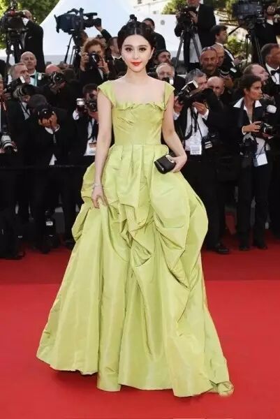 在布莱德·皮特主演的电影《生命之树》首映时范冰冰穿了Oscar de la Renta,这件礼服胜在特别的果绿色,在与红毯的对比下显得格外耀眼。