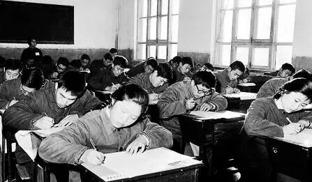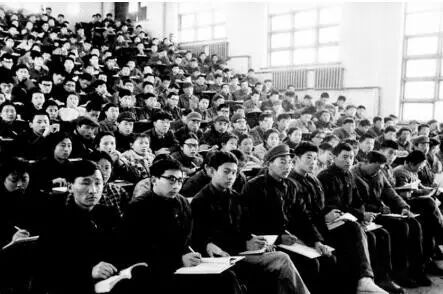 恢复高考后,清华大学首届大学生77级学生在课堂上认真听课。