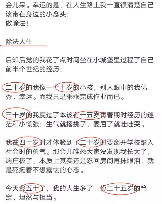 微博中她坦言:在人生路上,她一直很清楚自己要做除法。