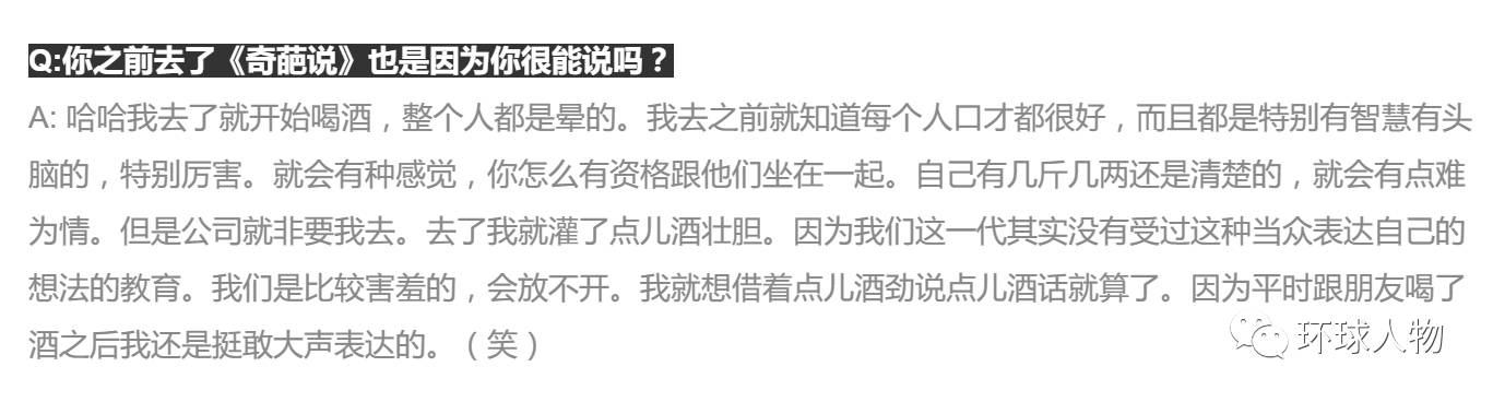 为了在《奇葩说》上敢说话,去之前先灌了自己几杯酒↓↓(《优家画报》采访)