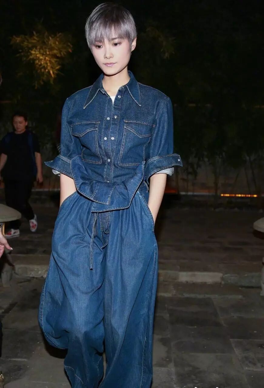 杨幂这身工装连体衣发挥有点失常,工装宽松的特点没了,过于修身,感觉就是一件普通的丹宁单品。