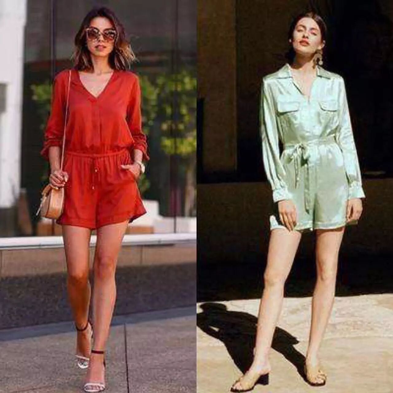 如果你的腿够细,不要犹豫直接选择短款的连体裤,能露大腿最好,这种天气搭配高跟凉鞋完美。