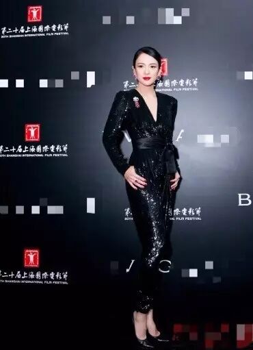 深V+垫肩+大腰带,章子怡女王气场尽显。