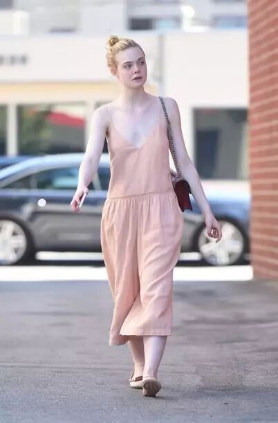 如果嫌弃上图中艾丽·范宁 (Elle Fanning)的穿法过于随意,显得腿有点短。学倪妮,用一件衬衫绑在腰上,一秒变出高腰线大长腿。