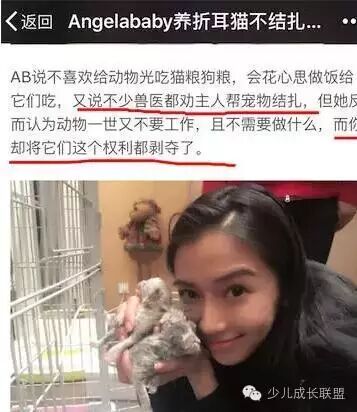 Angelababy养猫不结扎惹争议? 少儿成长联盟 港台女星 2016-05-16 17:20:16 261 创作不易,用心坚持,欢迎请BaGua喝几杯爱心咖啡!打赏并支持本文 打赏并删除本文 Angelababy一定没想到,自己养猫也会招来责骂啊……平时跟萌宠合影都好和谐的。还会指挥猫猫表演“坐下”各种姿势的玩法2014年还兴高采烈地帮猫咪征婚。自己的折耳猫生了3只小猫后,发微博都是冲破屏幕的温馨气氛,要给三小只起名字叫小清、小明、小节,合起来是TFCATS!但是看似圈粉的举动却引起了炮轰。因为Angelababy养的是折耳,但她跟媒体说知道兽医会劝主人给猫结扎,但她觉得不能剥夺动物这个权利。其实在AB养折耳猫的第一天时评论就有人提醒尽量不要让折耳猫繁殖但是Angelababy显然是没接受这个提议。专业人士解释:因为许多折耳猫像人一样坐着,很可能已经病发。后肢僵硬或屈曲痛苦导致他们是这种“成精了”的坐姿。一般来说呢,明星养宠物都是圈粉的。但如果养得不科学不合理,就会像上述两个案例那样引发其他主人的愤怒了。明星养宠物一般都是很壕的。蔡依林的狗“屋虎”都要上宠物学校。。。是的,狗都要上学,而且还蛮贵的。“住宿训练”每月要15000元,“假日训练”每月 6000元,到主人家训练则每两个小时2500元。但蔡依林为了屋虎千金一掷,眼睛都不眨哒。重金训练应该还是有成果的。这只狗经常陪蔡依林工作,很有明星架势同步咧嘴笑美颜冷酷脸蔡依林百变,狗儿子屋虎也紧紧跟上咯屋虎在她的《即时生效》、《PLAY我呸》等MV都有入镜特别镇得住场子吼!还接起了广告经比蔡依林咖位要大,心机屋虎会抢镜头,我是一哥!甚至成为狗头包代言人,有自己的产业链,问你羡慕不羡慕~天后还要亲自给狗巨星按摩……温暖系的明星萌宠是这样的。胡歌是著名猫奴,外号都叫“胡猫”。小时候就有和猫的合影据说他还有随身携带猫粮的习惯,看到流浪猫就投食。还有在拍仙剑的时候逗猫的动图……后来养了一只叫“儿童”的猫,他还配文说自己是儿童的玩具,“六一节,儿童成功登顶”给“儿童”拍的照片都很可爱也很别致,粉丝都知道他超爱这只猫还以《小王子》做类比,描述自己被依赖的心情然后自己出去拍戏怕“儿童”无聊,他又收养了第二只叫“酱弟”的猫,但胡歌明显比较嫌弃“酱弟”,大家分析就像岳父嫌弃女婿……然后“儿童”生了六只小猫以后他把酱弟阉了他还在哀叹“儿童”从小猫变成了母亲……送走四只小猫以后留下了眉眉和皮蛋,之后又捡到小黄猫小六子,成为眉眉的媳妇,所以现在也是其乐融融欢乐祥和的一家胡歌拍猫真是有一套,都非常可爱和谐动物果然可以给帅哥加分......孙俪是资深爱狗人士了,家里最多的时候有7只狗,大部分都是收养或者别人送的,北京2只上海5只。她自己也属狗,所以她戏称自己家里有8只狗……2009年还曾经出过一本叫《带我回家》的书,是孙俪多年来收养流浪狗的笔记,她也经常去流浪狗救助基地做义工。最早养的一只叫西西,2012年已经去世了。她说自从自己收养西西,就开始转运,认识海岩,开始拍戏,直到成为家喻户晓的女演员,所以这么多年感情很深第二只是海岩送的,名叫“折腾”。因为海岩家有十几只狗,孙俪看到之后很羡慕,海岩就说如果你把《玉观音》演好就送你一只,结果就送了博美“折腾”给她。叫“叶子”的狗是在流浪动物救助中心领养回家的,还有一只在街边捡到的“丫头”。孙俪也晒过儿子等等和狗亲密接触的照片,见到流浪狗,等等比自己还开心。小朋友和动物融洽相处的话倒真的可以有很多情感学习。别个明星家猫狗宠物都被好生供着,吃香喝辣,纸醉金迷。但是看到张梓琳家的狗,我才知道什么叫狗生艰难...........这是张梓琳的狗的微博,自称是张梓琳弟弟对自己的颜值有着谜之自信还会发九宫格美照顺便让他姐上个镜,哈哈哈哈这狗有病但是短腿的噩梦在它身上也上演着啊啊啊啊啊啊啊特别是老公也腿这么长啊啊啊外甥女才多大啊!已经开始和YOYO秀腿了比YOYO长啊啊啊啊.....张梓琳你们家才是真虐狗......张梓琳也经常调戏他弟把垃圾桶放在椅子上,就是为了不让短腿狗翻垃圾桶同情YOYO生而短腿,怎么就落入了张梓琳一家的魔爪里,命运真是好喜欢捉弄人呢阅读更多精彩内容,请长按二维码关注我们哦~ 创作不易,用心坚持,欢迎请BaGua喝几杯爱心咖啡!打赏并支持本文 打赏并删除本文 感谢您的支持鼓励,我会继续努力的!文章地址:用户邮箱:打赏金额:USDT 请输入数字点击”去打赏“,即可进行打赏支持本文章哦 angelababy About the Author 少儿成长联盟 功能介绍:辽沈地区青少年教育交流开放式平台 Related Posts 袁弘张歆艺婚礼,刘诗诗大抢风头,杨幂却无辜躺枪 2016-06-11 08:39:40 邓超孙俪结婚纪念日,一家四口突然正经起来 2016-06-09 08:08:42 吴奇隆黄晓明杨幂周杰伦 明星婚礼随多少份子钱? 2016-05-28 10:25:28 Angelababy养猫不结扎惹争议? 2016-05-16 17:20:16 发表评论