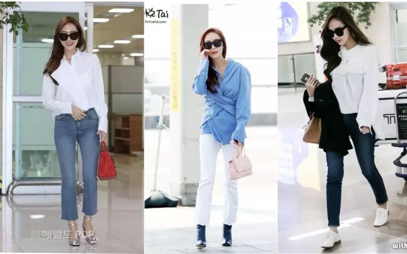 ▲ “睡衣风”衬衫搭九分喇叭牛仔裤,慵懒时髦