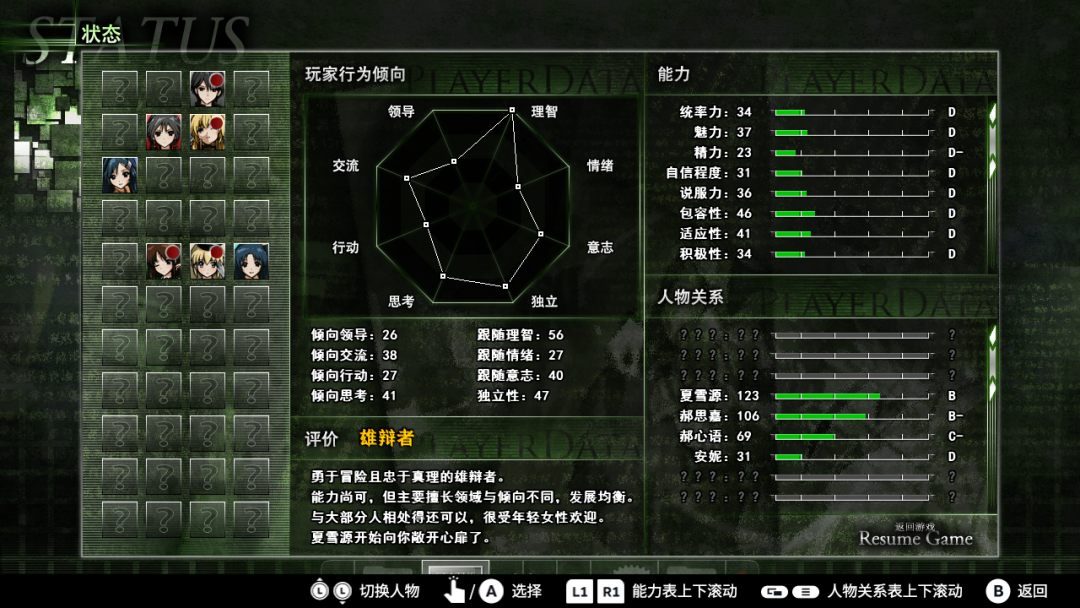 SageZX:会有一个八维图表让玩家随时看见自己的性格倾向,还能看见跟谁关系最好。玩家会觉得自己的想法得到了加强,还能找地方一起八卦。另外,虽然前两部的“结局”只有一个,但中途也会根据玩家的选择进入不同的线。所以,这主要还是一个锦上添花的功能。另外也剧透一下,第三部是有多结局的。