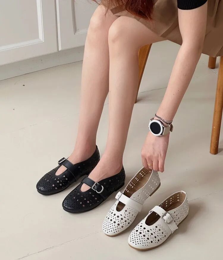 一双好鞋的灵魂,首先在于材质的选择。Plat Base这双夏季镂空玛丽珍休闲鞋采用真牛皮。
