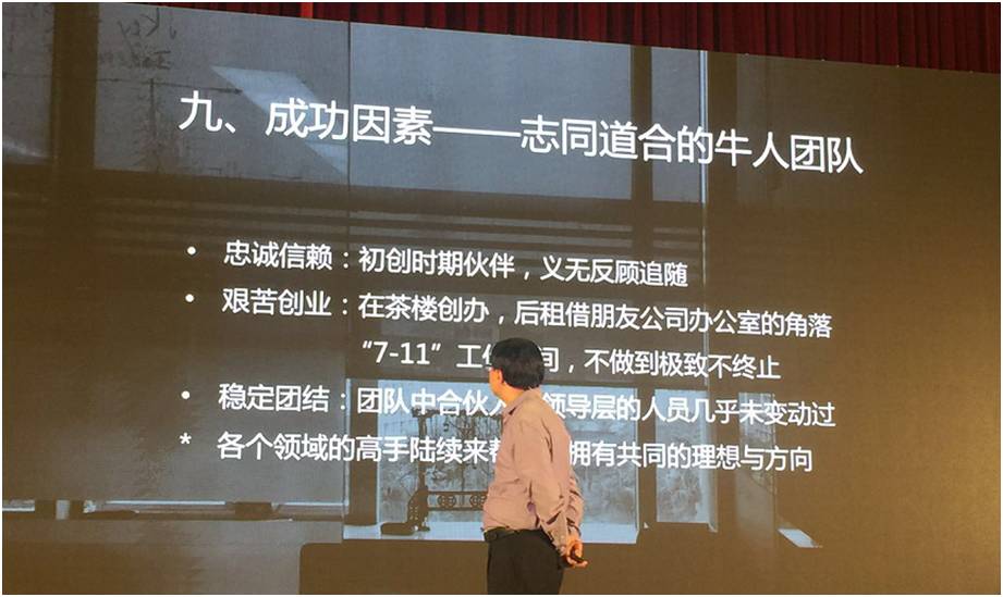 立志于打造一个信息同步、利益共享、权责分明的理想式联创模式,他对合伙人有严格的筛选标准,需要阿甘式的人物。