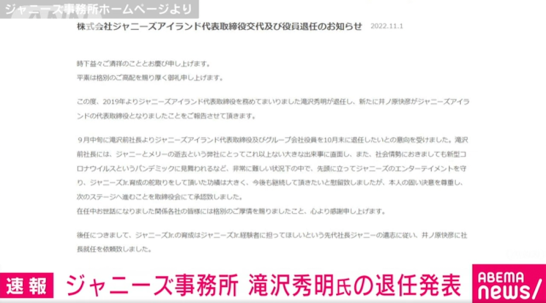 这样一来,本就对杰尼斯事务所没有留恋的泷泽秀明就更加找不到留在事务所的理由了。