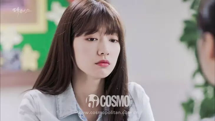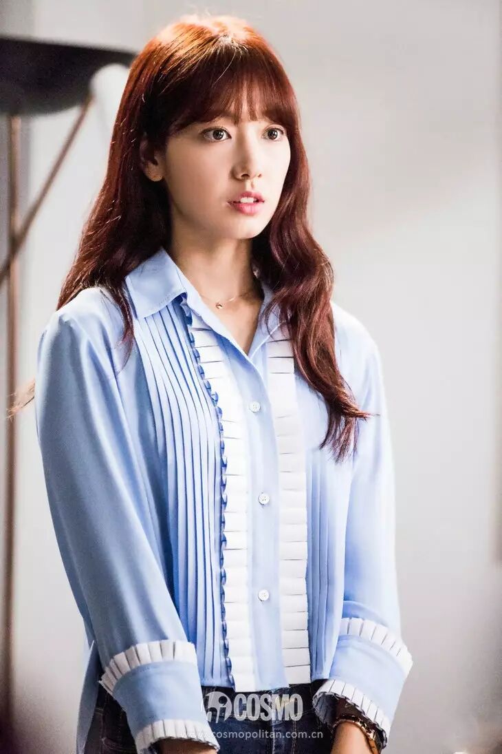 我们惊呼朴信惠瘦了就是从这张剧照开始。亚麻青色头发配空气刘海,妆容上则是全包眼妆配豆沙红,展现了职业女性的干练魅力。