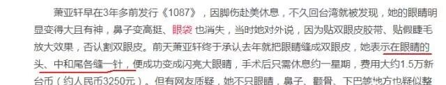 有传闻说,萧亚轩是在美国做的双眼皮不过她否认了,但根据她的描述,眼皮上取三点,术后恢复快的特点貌似做的微创双眼皮: