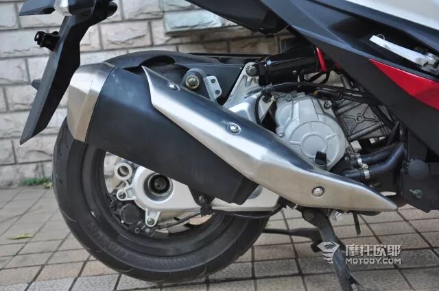 发动机采用四冲程单缸四气门双顶置凸轮轴发动机,排气量为189cc,最大功率为14.1Kw/8250rpm,最大扭矩为16.5N.m/6500rpm,压缩比为12.1:1。